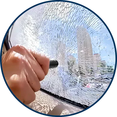 Ja, de Safe Pro X kan eenvoudig elke autoruit breken, zelfs versterkte.
